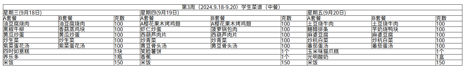 第3周(2024.9.18-9.20)学生菜谱(中餐)